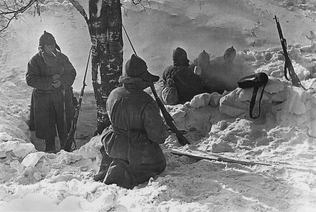 Первая — так называемая «зимняя война» (1939-1940 гг.) — столкновение огромной державы с небольшой соседней страной с целью решить свои геополитические проблемы. Ход и исход этой войны известен. Непропорционально большими жертвами СССР удалось вынудить Финляндию отдать часть стратегически и экономически важных территорий. Известен и международный резонанс этого конфликта: начатый в контексте разворачивающейся Второй мировой войны, он вызывал ассоциации с германскими вторжениями в Австрию, Чехословакию и Польшу и привел к исключению СССР из Лиги Наций как агрессора. Все это должно было воздействовать и на взаимное восприятие непосредственных участников боевых действий с обеих сторон. Для финнов это была, безусловно, справедливая война, и дрались они с большим патриотическим подъемом, ожесточенно и умело, тем более что бои протекали на их территории. Советским же солдатам командование должно было еще обосновать, почему «большой» должен обижать «маленького». Вот как выглядело это обоснование.